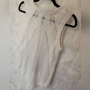 Attitude Open Knit Dove White Pullover Sweater Vest