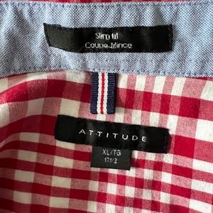 Attitude - Red &White Checkered Long Sleeve Casual Button Down Shirt - excellent pre-owned condition