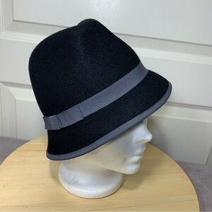Attitude minimalist timeless black gray ribbon trim 100% wool fedora bucket hat