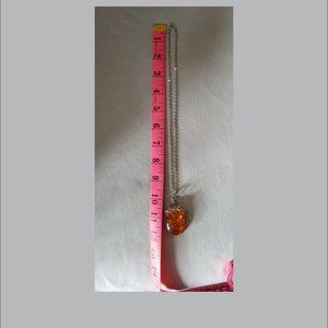Attractive, nice & realistic looking, faux amber pendant jewelry/jewellery ~1.75 inches long by ~1.25 inches wide, with bail 2.5 inches long, chain 19 inches long, not worn, like new.