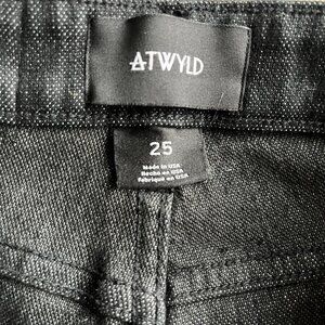 These are Atwyld moto jeans and they’re exactly what you want from a good pair of riding denim. The fabric is sturdy and structured without feeling stiff, so they hold their shape but are still comfortable to move in. They sit nicely at the waist with a straight, flattering leg that works on and off the bike. The back pockets and seam placement are really well done, and the quality is what you’d expect from Atwyld - made to be worn hard and last.