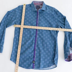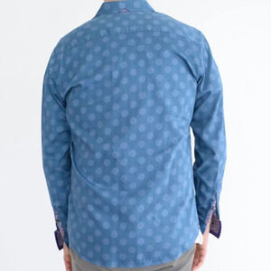 Au Noir Blue Polka Dot 100% Cotton Button Down Designer Dress Shirt Size 4 Large