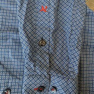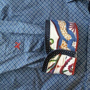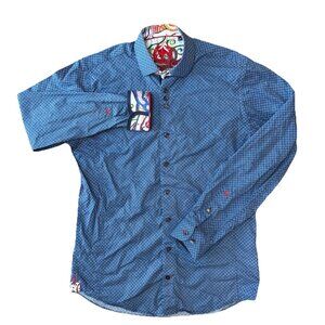 Au Noir Button Down Shirt Mens 2 Long Sleeve Flip Cuff Geometric Blue Small