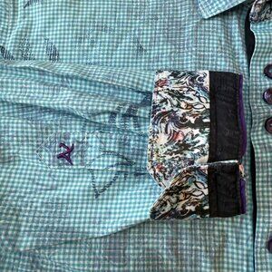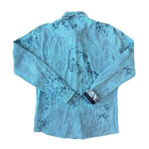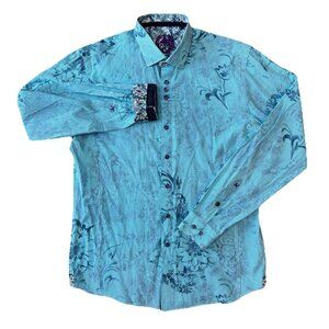 Au Noir Button Down Shirt Mens 3 Long Sleeve Flip Cuff Geometric Blue Medium