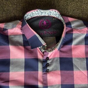 Au Noir Colourful Plaid Men’s Button Down Shirt Purple Punk Navy sz 6 (2XL)
