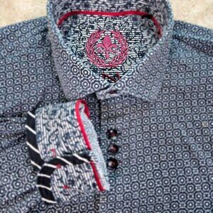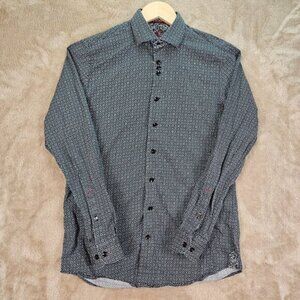 Au Noir Dress Shirt Geometric Pattern Long Sleeve All Over Print Men's Size 2