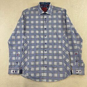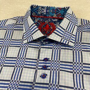 Au Noir Dress Shirt Men's 2 Blue White Check Plaid Abstract Flip Cuff Button Up