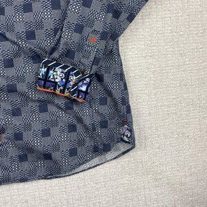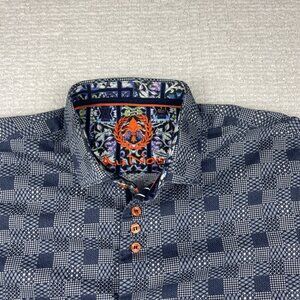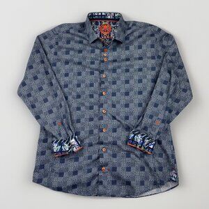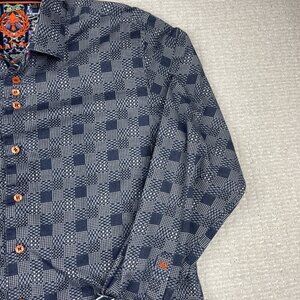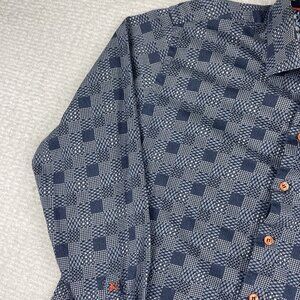 Au Noir Men Shirt Button Up Long Sleeve Sz 4 Blue Geometric Square Abstract AOP