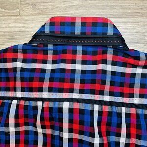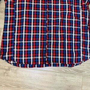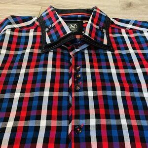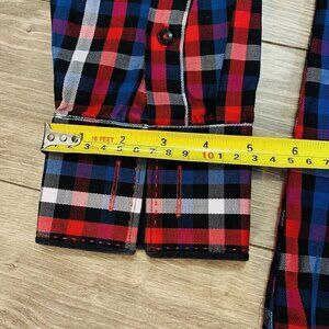 Au Noir Mens Button Down Shirt Sz 8 4XL plaid RedBlue Long Sleeve Cufflink Shirt