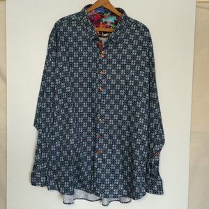 Au Noir Mens Button Plus Size Dress Shirt 3X Blue Square Contrasting Flip Cuffs