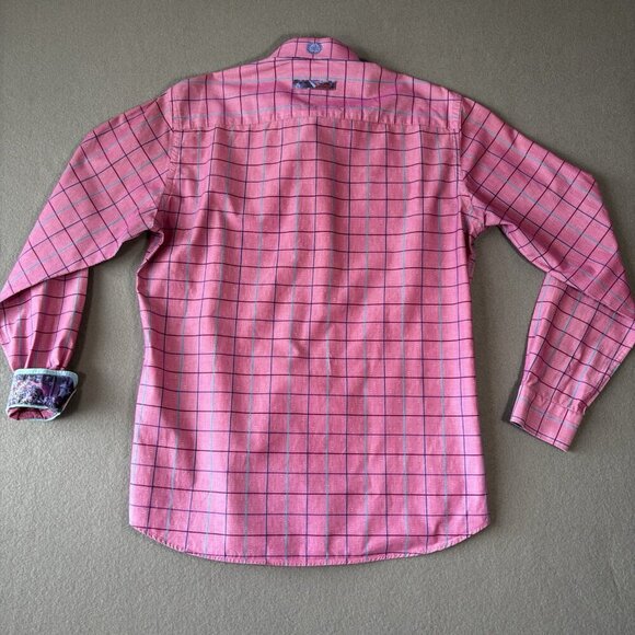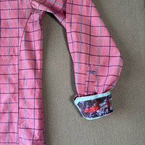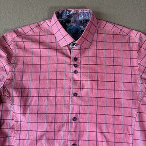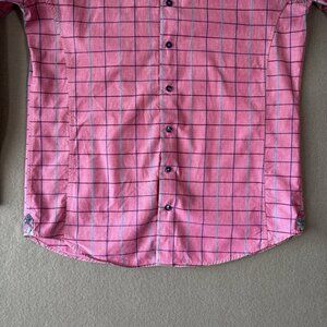 Au Noir Mens Button Up Shirt Size 3 M Pink Plaid Pattern Contrasting Flip Cuff
