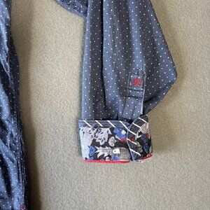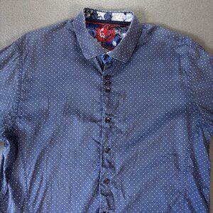 Au Noir Mens Button Up Shirt Size 4 Blue Polka Dot Flip Cuff Going Out Faded