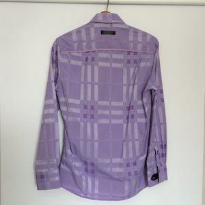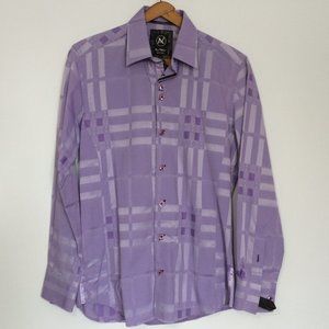Au Noir Mens Dress Button Shirt Sz 1 XS Purple Woven Jacquard Long Sleeve