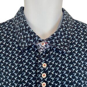 Item keywords: Men's shirt, Au Noir shirt, long sleeve, patterned shirt, button-up, 100% cotton, navy shirt, casual wear, smart casual, designer shirt, Turkey made, size 6/2XL, fashion shirt, origami birds pattern