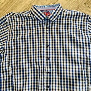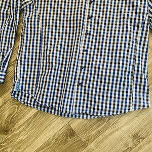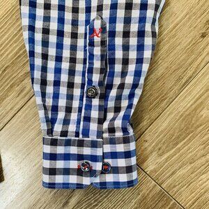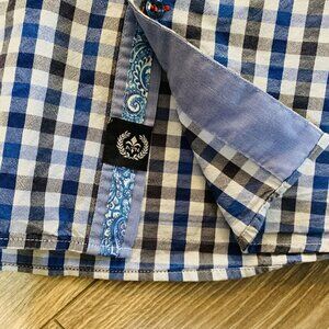 Au Noir Mens Shirts Button up Long Sleeve Flip Cuff Plaid Blue Size 7/XXL