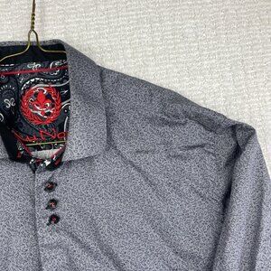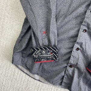 Au Noir Shirt Men Sz 4 Button Up Funky Animal Nature AOP Grey Paisley Flip Cuff