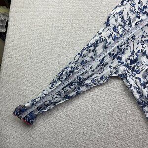 Au Noir Shirt Men Sz 4 Button Up Funky Watercolor Floral Nature AOP Blue Boho