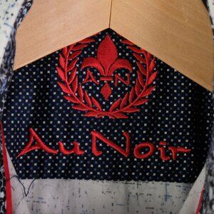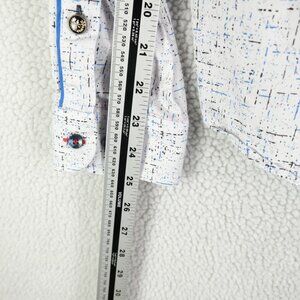 Au Noir Shirt Mens 5 White Blue Button Up Striped Geometric Long Sleeve