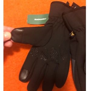 Auclair black and gray sporty tech gloves new with tags. Light rugged fabric, polar fleece lining, elastic cuff for the best fit, insert on the tip of the thumb and index finger designed for touch screens. Marked size S Mens, but would fit a size M or L Womens nicely. This item comes from a smoke free, pets friendly home. Recycled bags/box used when possible. Thanks for watching!