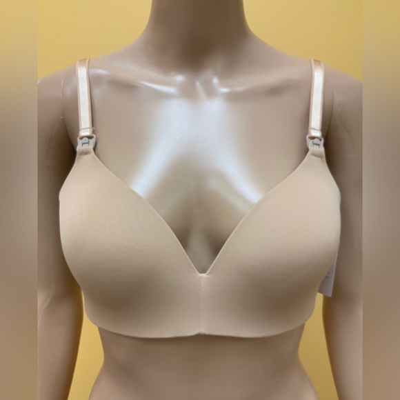 Wireless Nursing Bra - Molded Cups to provide support and shaping without rubbing or poking. 3 hook back enclosure accommodates fluctuations in breast size. Nursing clips easily release with one hand.