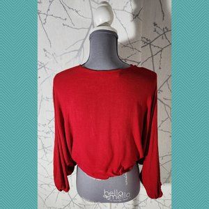 Audrey 3+1 Red Surplice Faux Wrap Short Blouse
