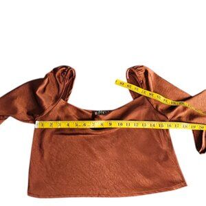 Audrey 3+1 Womens Satiny Cowl Neck Crop Top, Ruched Shoulder, Size M