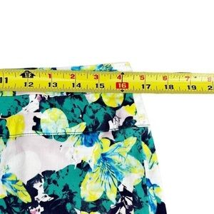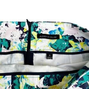 In excellent pre-owned condition, cotton blend with some spandex (fabric tag missing). Lovely floral pattern, back zipper, size 10, see measurements.