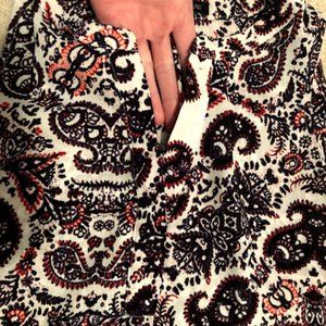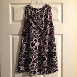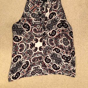 Audrey & Celine sleeveless patterned blouse. Great used condition. Size M. Front top has slit (as shown in picture).