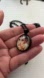 25mm (approx 1”) glass dome cabochon, with an image of Audrey Hepburn, secured on an a black bezel pendant base.