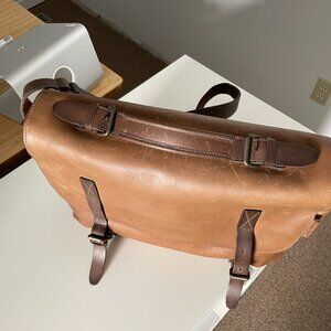 All materials are heavy duty hardware and buffalo vegetable tanned leather. Hazelnut coloured leather that includes plaid lining, exterior front pocket, exterior back pocket with elastic luggage loop, padded laptop compartment, and heavy duty handle. Retailed for ~$400 CAD.