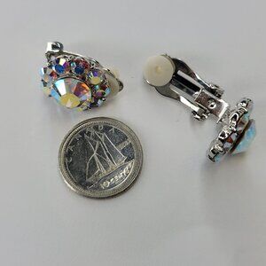 Aurora Borealis Clip On Earrings, Colorful Small Clip Ons