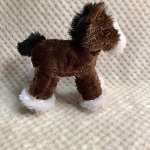 Meet this charming brown and white Aurora mini flopsie Clydesdale horse! Standing at about 8 inches, this little beauty features soft brown and white colouring. Has been freshly washed and brushed- super soft and ready for cuddles or to join a collection. Perfect for horse lovers, plush collectors, or anyone who loves a touch of equine charm!