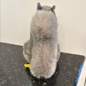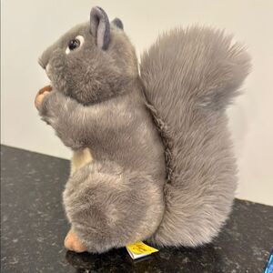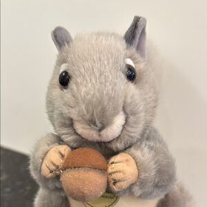 Aurora Miyoni real life squirrel plush gray squirrel doll gift about Size 9” . This charming stuffed squirrel toy features a soft, plush design with a delightful combination of gray and cream colors. Its fluffy tail and adorable face make it a perfect cuddly companion. Ideal for anyone who loves cute and cozy stuffed animals.