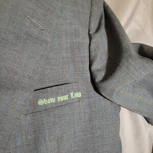 Austin Reed of Regent Park wool colored pinstripe jacket with stamp detail. Uni