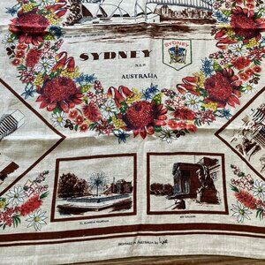 Australia Souvenir Square Tablecloth Vintage Pure Linen Sydney Landmarks Neil