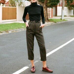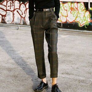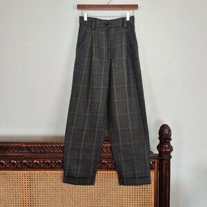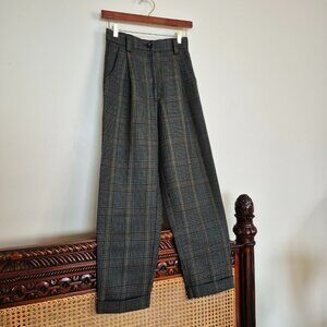 Australian Brand CAVES COLLECT Green Check 100% Wool Alice Ciggie Pants