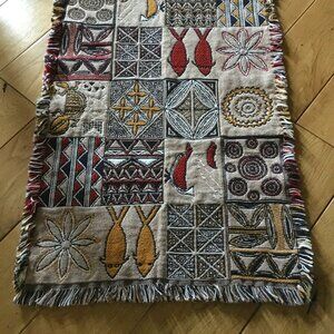 Very good preowned condition, Australian animal and patterned woven table runner. So cool. Would also look good tossed over a chairback. Fits perfectly over a side table.