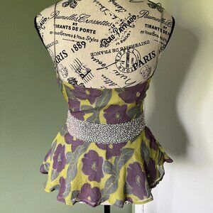 Australian designer 100% silk peplum top with floral design and sequins