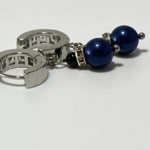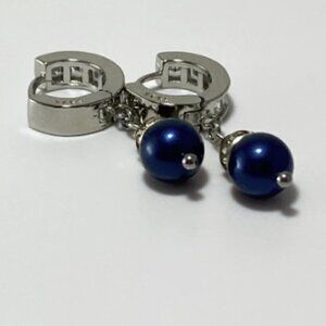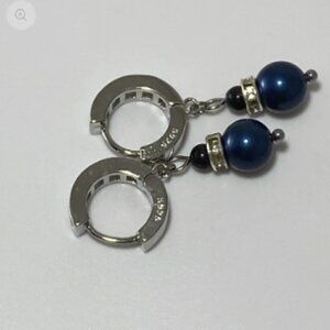 Austrian crystal pearls are hung on Sterling Silver earring hoops encrusted with sparkly Cubic Zirconia stones.