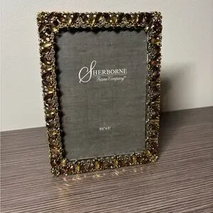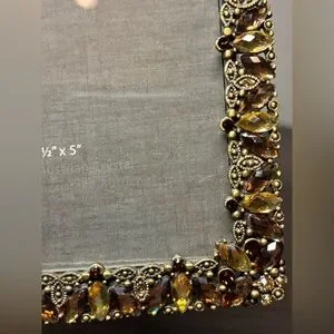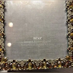 This brand new table-top 3 and 1/2 x 5 picture frame boasts a luxurious gold and brown color scheme made from genuine Austrian crystals.
