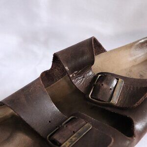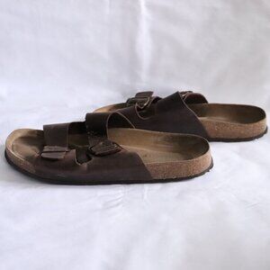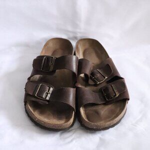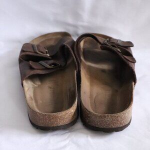 Autenti Unisex Sz 43 Brown Buckle Leather Socks Casual Slip On Sandals