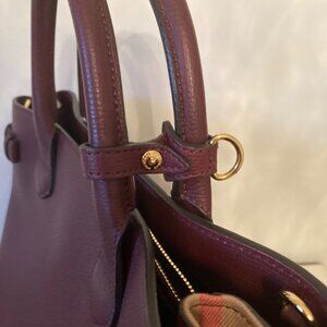 Auth. Burberry Leather & House Check Medium Banner Handbag With Strap *MINT*
