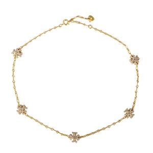 Auth NEW Tory Burch 18k GP ROXANNE Sparkling Pavè Logo Pendant Necklace $345