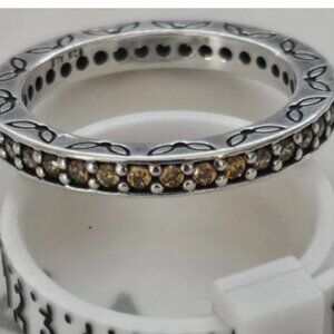 Authentic PANDORA Sterling Silver *RETIRED and Rare* Stackable Eternity Ring Amber Zirconia - 190618CZM-54