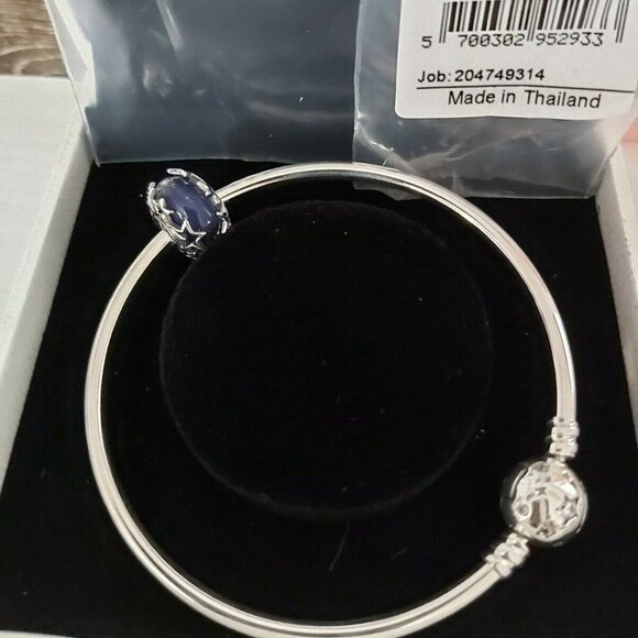 Authentic Pandora Moments Sterling silver Limited Edition Stars & Galaxy Bangle & Galaxy Blue & Star Murano charm Gift set