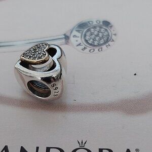 Auth Pandora Retired Sterling Silver &14K Joined Together Heart w/cz's 791806CZ