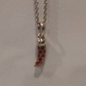 Inspired by the cornicello, an Italian horn-shaped talisman of luck, this textured sterling silver pendant is punctuated with vibrant red enamel domes. The diminutive pendant works equally well on choker necklaces or long necklaces.