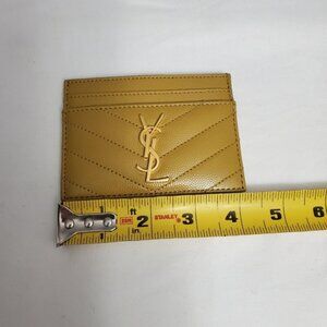 Auth Saint Laurent YSL Monogram Quilted Card Holder Yellow
