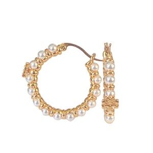 Auth Tory Burch Kira Imitation Pearl Bead Hoop Earring Card/Dust Bag Rtl $148 US
