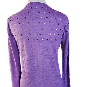 Authen Iceberg beaded purpul long sleeves cardigan 75% virgon wool 25%silk. M